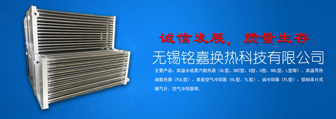無錫銘嘉換熱科技有限公司是生產散熱器的專業工廠。 產品有:高溫水或蒸汽散熱器、高溫導熱油散熱器、表面空氣冷卻器、油冷卻器、鋁制串片式暖氣片、空氣冷卻器、翅片管換熱器